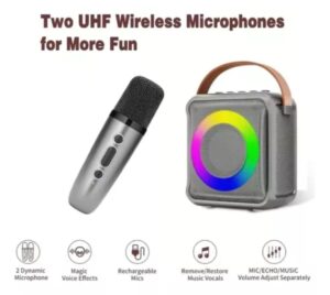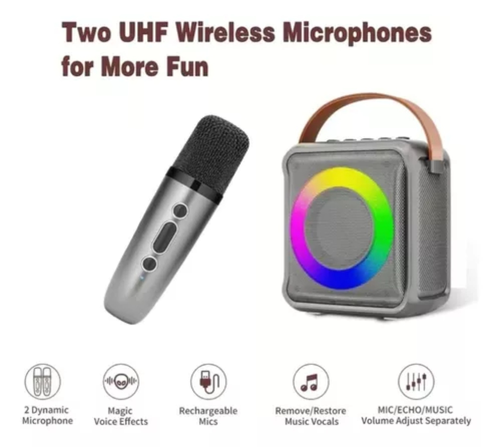 Haz que cada reunión, fiesta o momento en familia sea inolvidable con esta mini bocina de karaoke con diseño elegante, perfecta para niños, jóvenes y adultos. Su tecnología avanzada ofrece un audio claro, sin retroalimentación molesta, y un funcionamiento fácil para todas las edades.